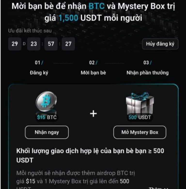 Khi người được mời hoàn tất giao dịch sao chép đầu tiên, cả hai sẽ nhận thưởng tự động.
