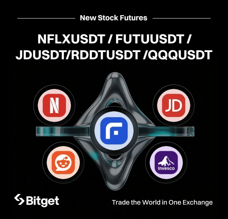 Bitget niêm yết hợp đồng vĩnh cửu chỉ số cổ phiếu NFLXUSDT, FUTUUSDT, JDUSDT, RDDTUSDT và QQQUSDT