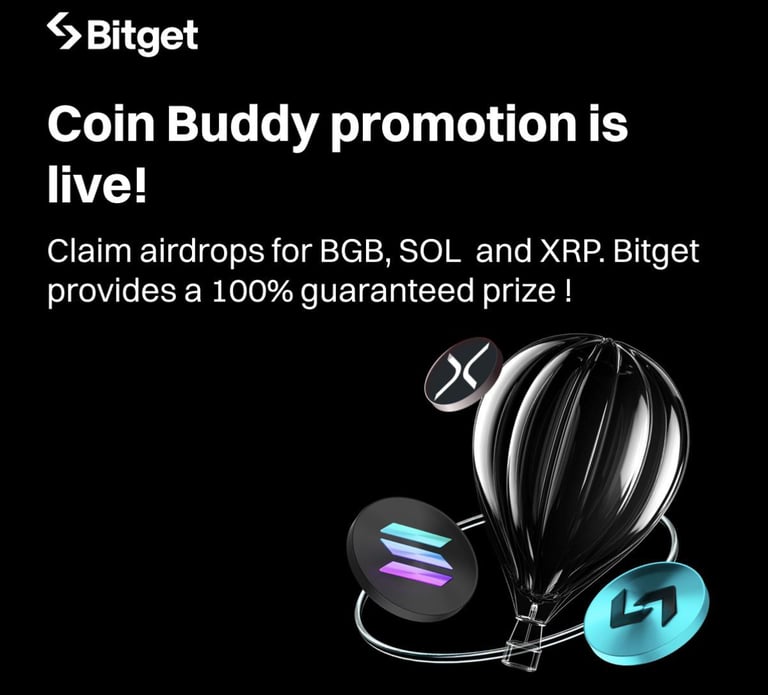 Bitget Ra Mắt Sự Kiện Coin Buddy – Cơ Hội Nhận Airdrop BGB, SOL và XRP Với Phần Thưởng Đảm Bảo 100%