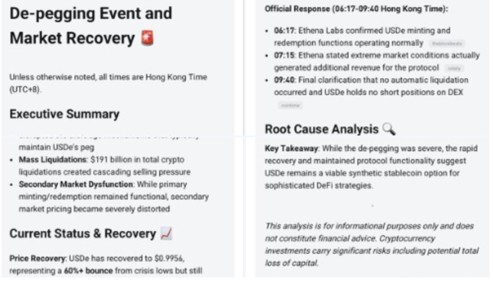 Nhờ cơ chế minh bạch và quản trị rủi ro tốt hơn của các dự án stablecoin thế hệ mới, thị trường đã dần ổn định trở lại, với USDe phục hồi về mức gần 1 USD chỉ sau một khoảng thời gian ngắn.