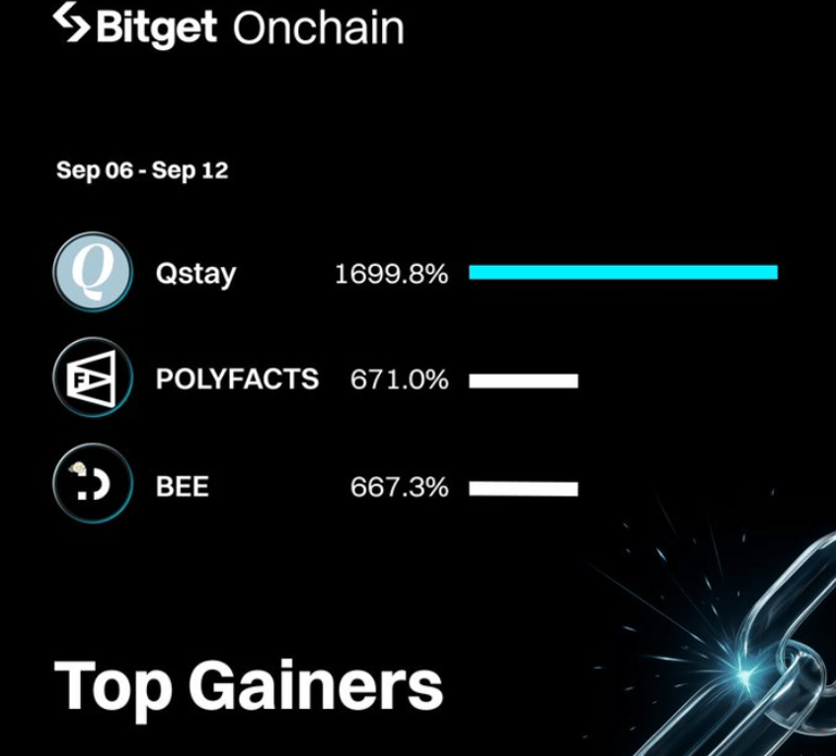 Với những cú bứt phá ấn tượng của $QSTAY (+1,699.8%), $POLYFACTS (+671%) và $BEE (+667.3%), Bitget Onchain đã chứng minh sức mạnh của dữ liệu on-chain và chiến lược dựa trên thông tin sớm.