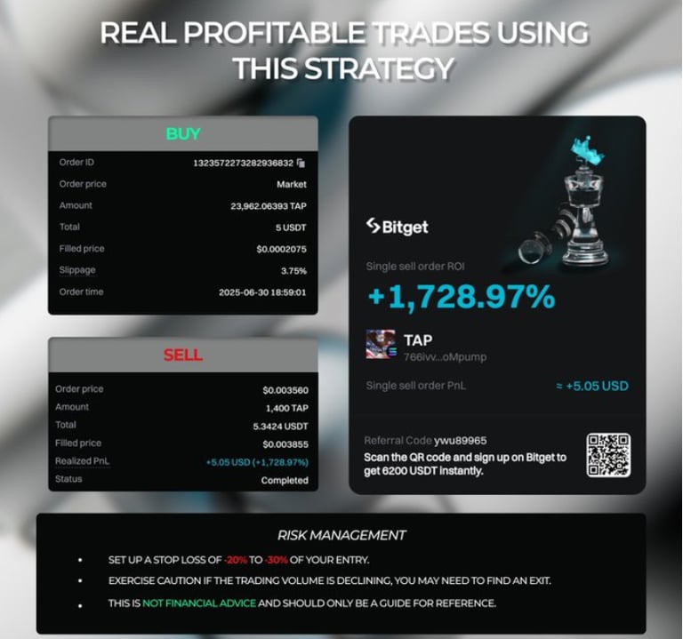 Bitget tiếp tục khuấy động cộng đồng giao dịch toàn cầu với Onchain Challenge Phase 8 – một sự kiện vừa đơn giản, vừa giàu tiềm năng. Nhiều nhà giao dịch đã chia sẻ trải nghiệm thú vị, trong đó có người chỉ với lệnh 5 USD trên token TAP đã bất ngờ đạt lợi nhuận +1.700% mà không cần đòn bẩy, nhờ tận dụng đúng thời điểm biến động giá.